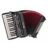 Vielseitiges Schülerakkordeon zu einem attraktiven Preis mit 37 Tasten, 3 Stimmen, 7 rechten Registern und 96 Bässen, 4 Stimmen, 3 linken Registern. Herstellung: Hohner Asien. Kommt mit Riemen und Abdeckung.