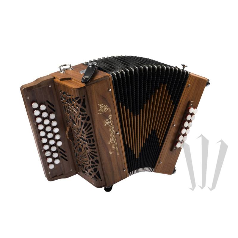 Following in the footsteps of the Elfique, the Romané is a compact and highly versatile diatonic accordion, featuring 3 voices and 5 accidentals on the right-hand manual, and 12 bass buttons on left hand.