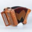 Maugein diatonic button accordion with 2 voices, 2.5 rows (RH) and 3 voices, 2 registers and 12 bass (LH), crafted in the finest tradition: lightweight, Typo A Mano reeds (nailed), solid wood box...Ideal for beginners or intermediate players looking for a quality and versatile mid-range diatonic button accordion.