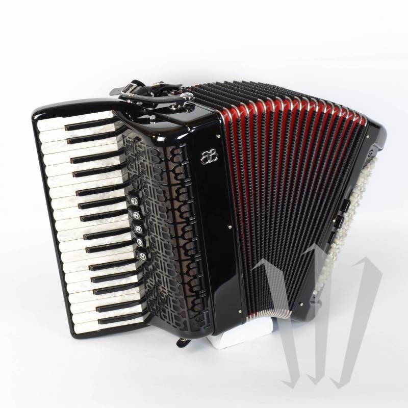 Acordeón a piano FBB de 3 voces, 5 registros de mano derecha y 96 bajos de 4 voces, 3 registros de mano izquierda, ligero y versátil.