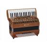 Top of the range diatonic Castagnari , 2 1/2 filas, 3 voces de mano derecha con 5 registros. 12 bajos, 3 voces de mano izquierda con 4 registros. Teclado cerrado, caja de madera maciza (cerezo o nogal). Afinación: medio swing (modificable bajo pedido). The Mory tiene música "Tipo a mano" de primera calidad.