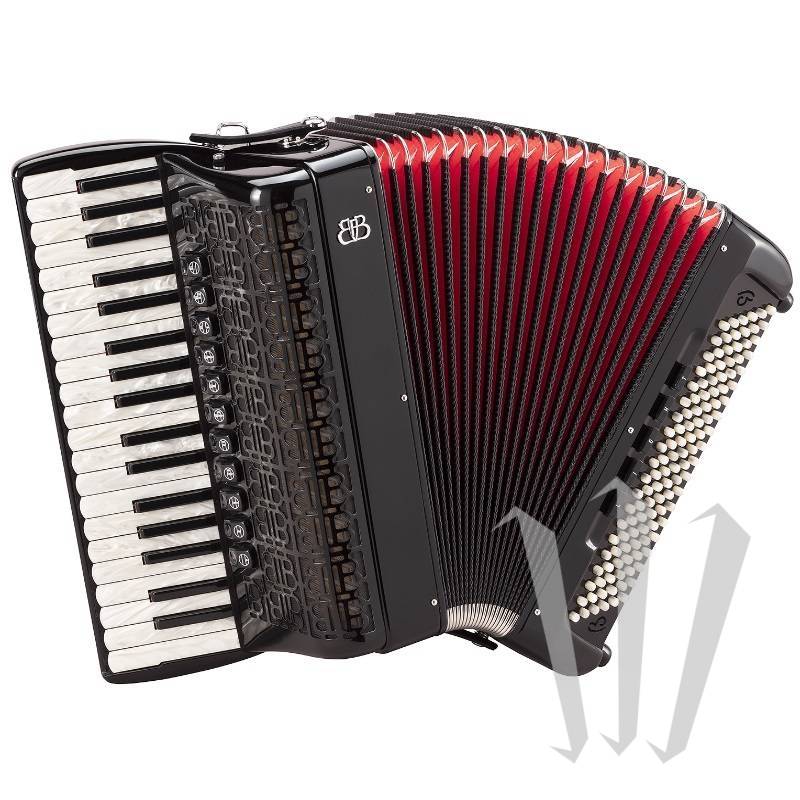 Accordéon piano 4 voix et 11 registres main droite et 120 basses, 5 voix et 5 registres main gauche.