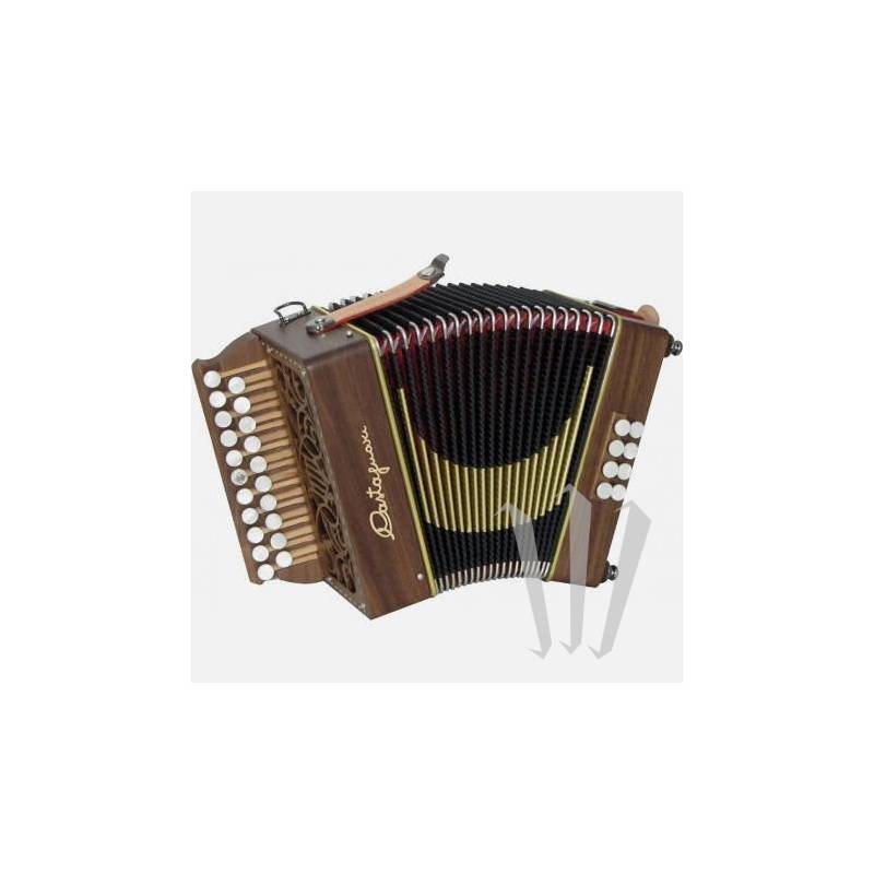 Castagnari Diatonique très compact avec 2 rangs, 1 voix à la main droite et 8 basses, 2 voix à la main gauche (Sol Do).