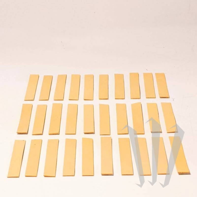 これらの天然皮革は、革パッドで接着された金属補強材で補強することができます(ロットごとに別売りです。ページの下部を参照してください)。