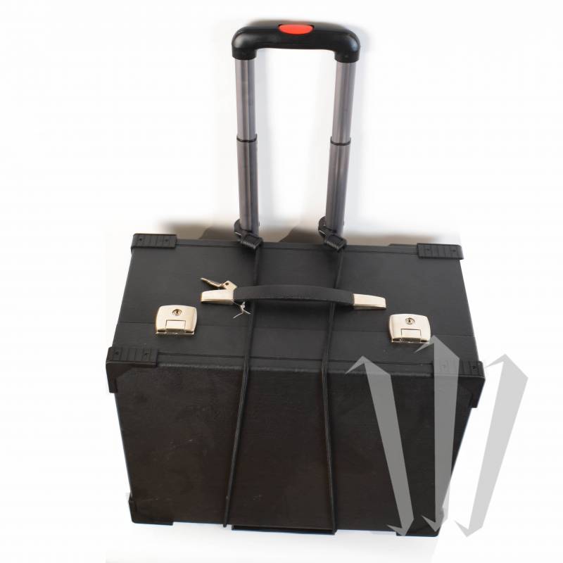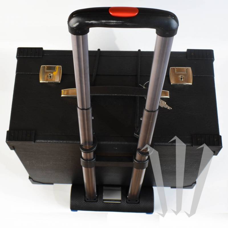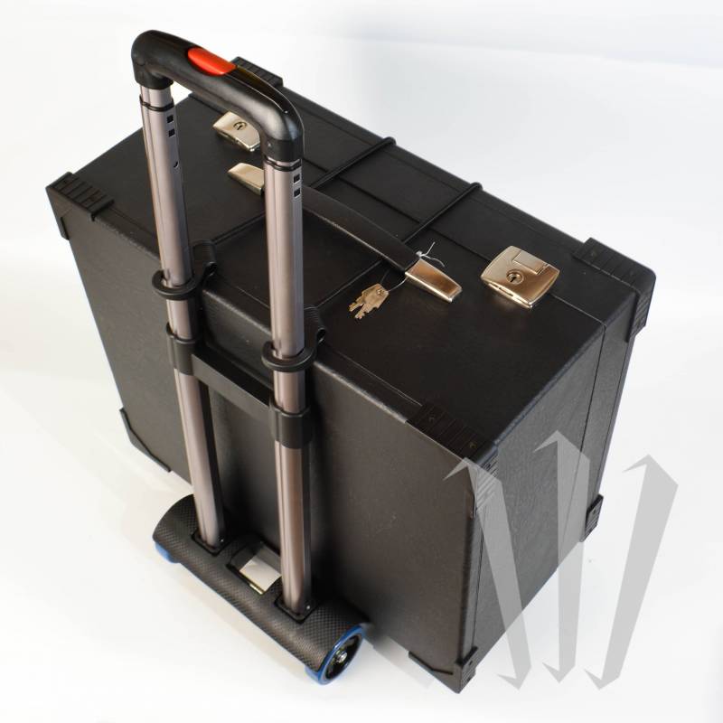 Atenção, para o transporte da sanfona é importante colocar a maleta com a alça para cima, e com a parte de trás da maleta encostada no carrinho para que a sanfona fique de pé durante o transporte.