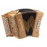Cavagnolo Vedette 10 SK. Modelo de botão com corpo de piano, no mesmo espírito do Victoria de Richard Galliano . Este Cavagnolo Vedette 10 SK tem 13 registros para a mão direita e é recomendado para jazz e música clássica.