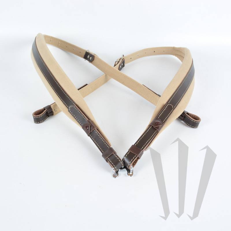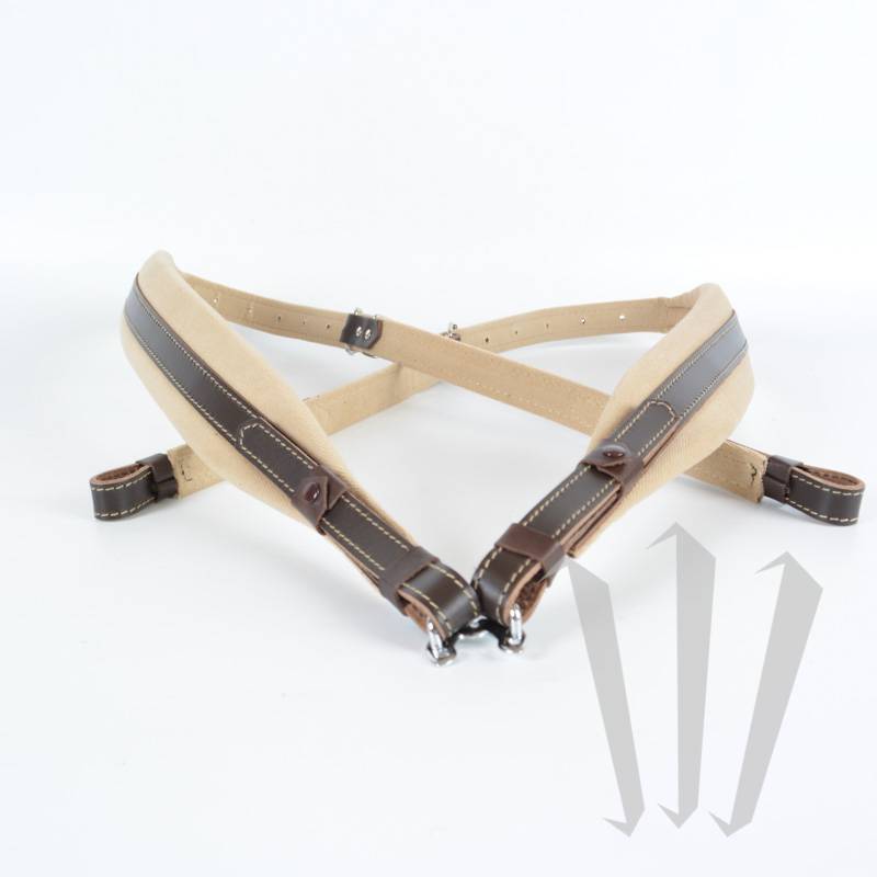 Correias de couro e tecido, usadas para equipar acordeões diatônicos de alta qualidade.