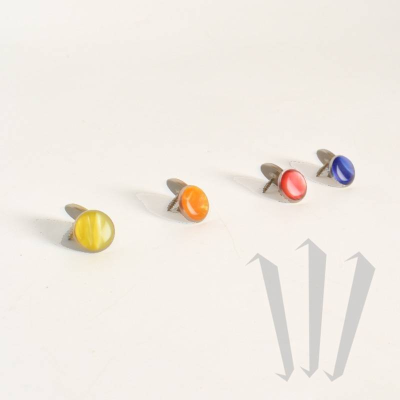 Botões circulados à direita para acordeão, disponíveis em vermelho, azul, amarelo e laranja (botão espelho ou lágrima).