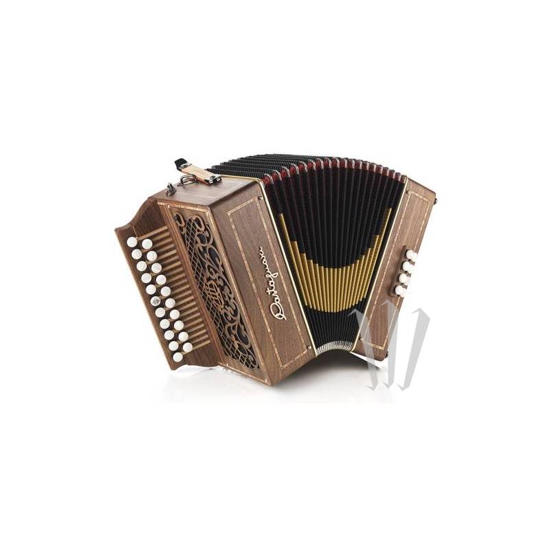 Castagnari Диатоника 2 ряда 3 голоса в правой руке, 2 регистра 8 басов Соль До 3 голоса в левой руке, открытая клавиатура.