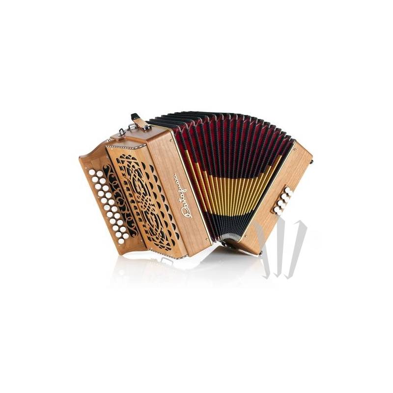 Diatonic Castagnari 2 ряда, 4 голоса правой руки, 7 регистров (7 эффектов). 8 басов, 3 голоса для левой руки.