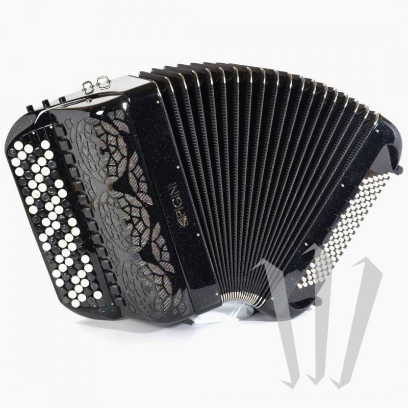 Голоса этого аккордеона аранжированы на манер современных концертных инструментов, с флейтой и фаготом в Resonance Box, а флейтой и пиколло из коробки. Поэтому у него есть две флейты с очень разным тембром, теплая для бокс-флейты и более чистая для небоксовой флейты.