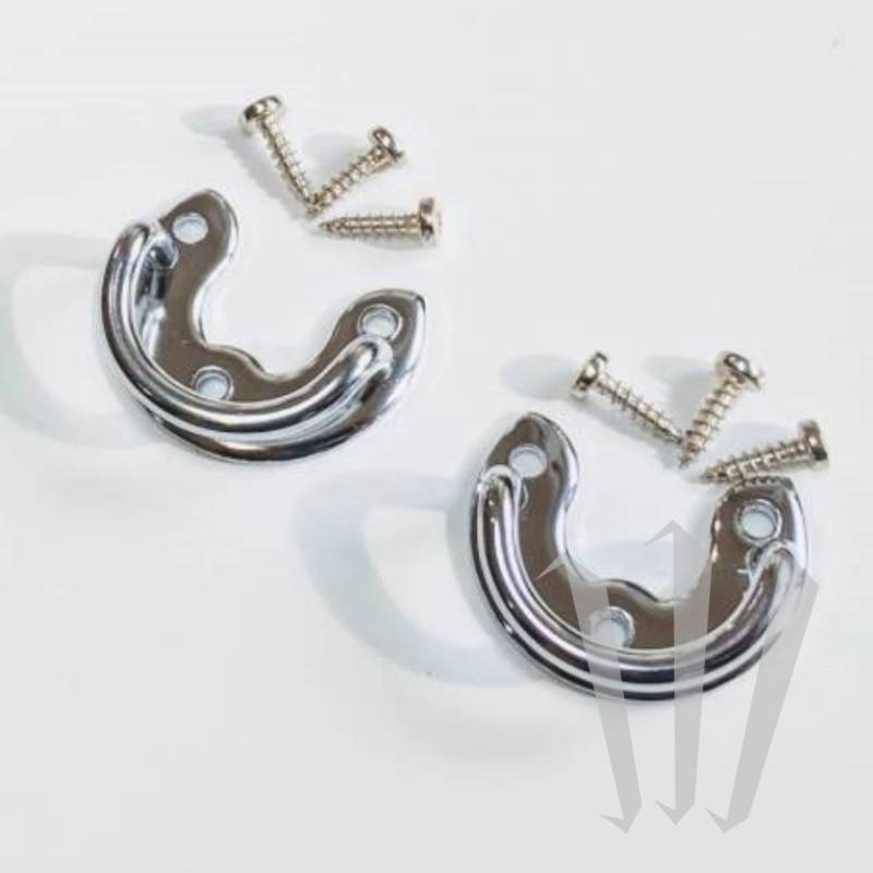 Металлическая клипса для аккордеонных лямок. Удобно для оснащения старого аккордеона, не оснащенного подтяжками, или оснащенного старой системой крепления подтяжек, которая слишком мала для существующих подтяжек. Некоторые старые модели Hohner 2915, например, не имеют ремней для подтяжек.