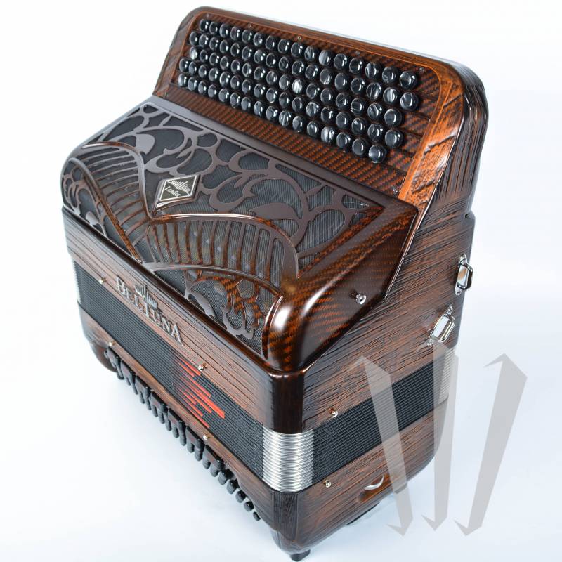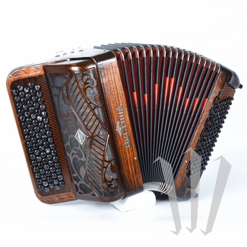 Версия Beltuna Leader 2050 Fly (углеродное волокно) представляет собой хроматический баян высокого класса с резонансными коробками, 4/5 рядами, 82 кнопками, 4 голосами, 5d+1a регистрами и 96 басами, 5 голосами и 7 регистрами (MG).