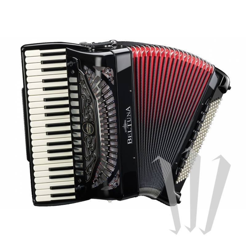 Beltuna Prestige IV 120 BalkanStar — хроматический аккордеон высокого класса с резонансными ящиками, 41 клавишей, 4 голосами, 13 регистрами (MD) и 120 басами, 5 голосами и 7 регистрами (MG).