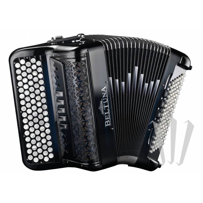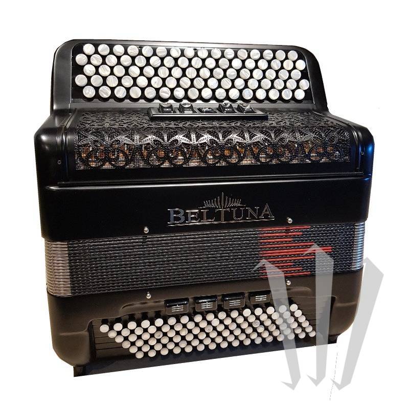 Beltuna Studio 300 — хроматический баян с 5 рядами, 82 кнопками, 3 голосами, 5 регистрами (правая рука) и 96 басами, 4 голосами, 4 регистрами (МГ). Подходит для начинающих/средних уровней.