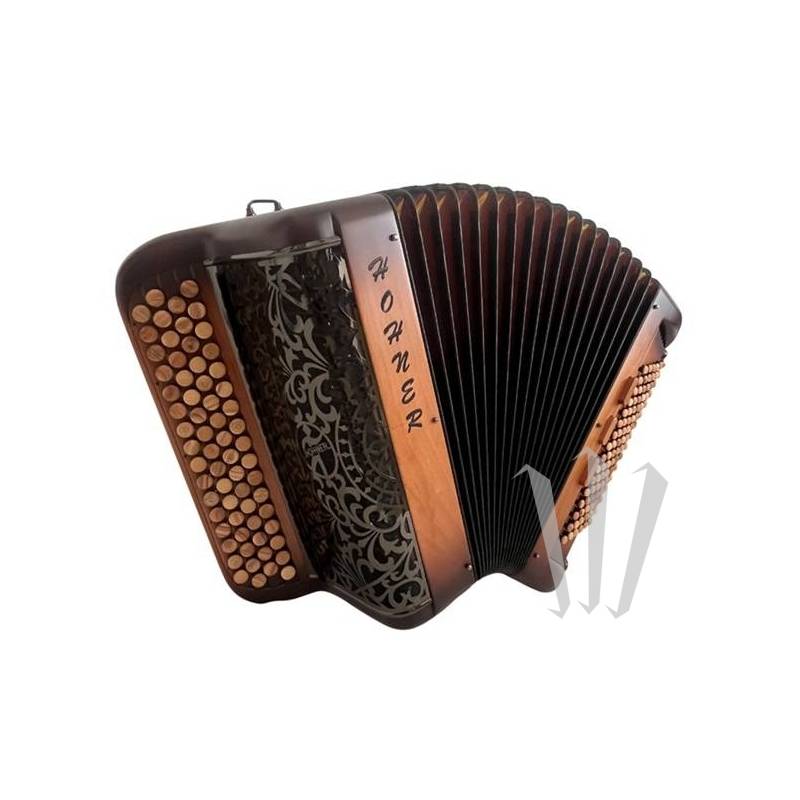 FUN 96 紧凑型贝斯系列的新木制模型,右手 3 声部?共鸣箱内有 2 个长笛和一个巴松管,风箱内有扩音器:独特的声音将让您惊叹不已!