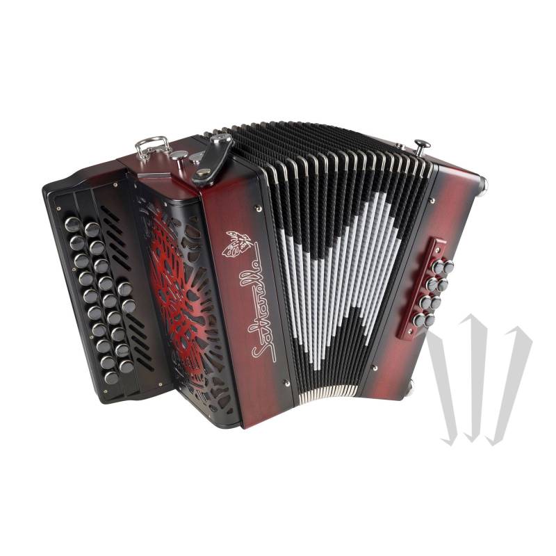 Inferno 由实心樱桃木制成,手绘饰面赋予其独特的外观,同时又不失实木乐器的声音。
