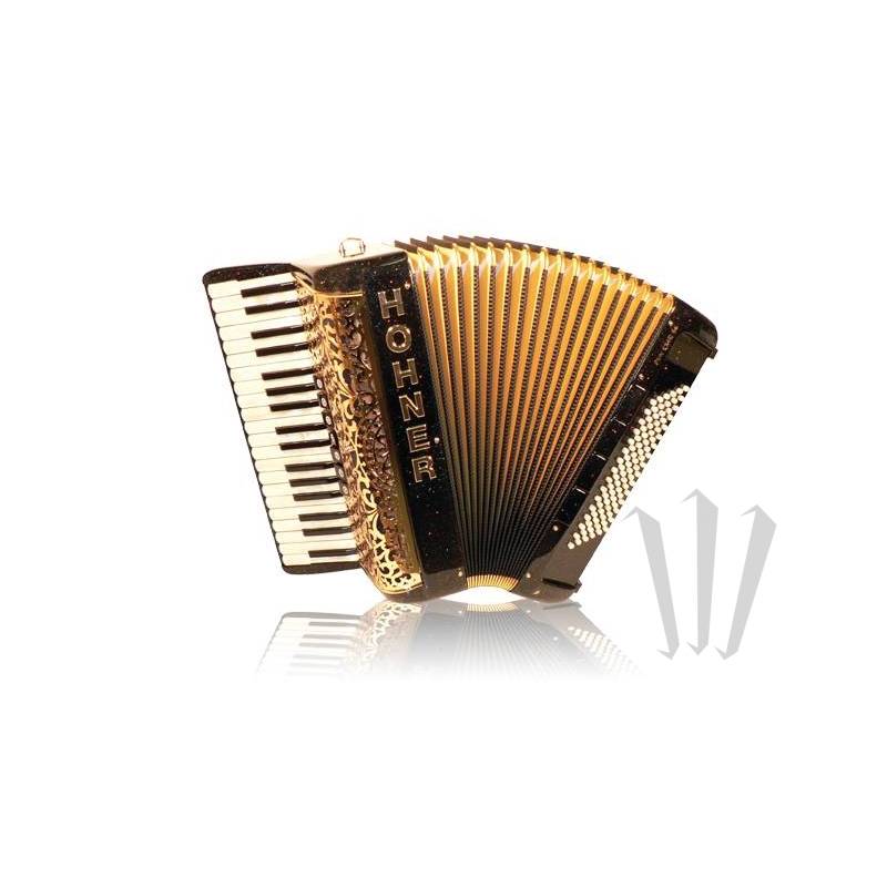 带有共鸣箱的 96 低音半音阶钢琴手风琴,紧凑、轻便且用途广泛,配备 37 个键/音符、3 个声部、7 个右手音域和4 个声部、 4 个左手音域。舞台的理想选择。