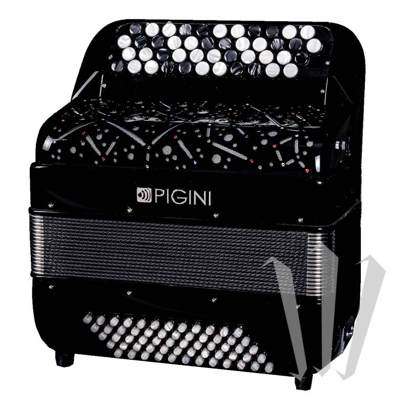 Pigini Skywalker 是开始学习该乐器的完美学生半音阶手风琴。凭借其紧凑的尺寸和 5 公斤,它可以使用从 5 到 6 岁。它也可供寻找轻便手风琴的成年人使用。