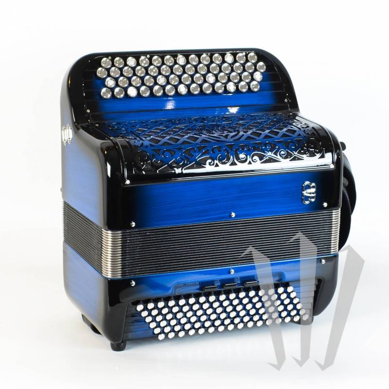半音手风琴 3 声部、5 个右手音域和 96 个贝司、4 声部、3 个左手音域。 FBB 品牌的中/高端手风琴。