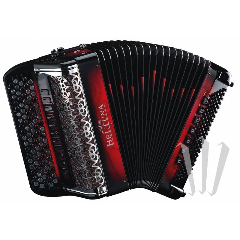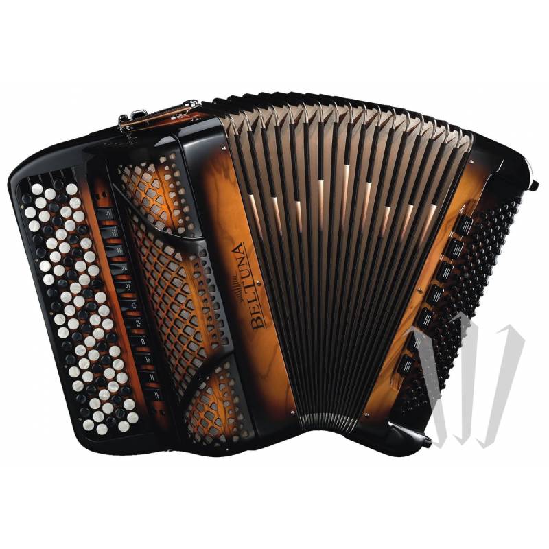 Beltuna Prestige 3000 是一款高端半音阶按钮手风琴,带有共鸣箱、4/5 行、92 个按钮、4 声部、11 个音域 (MD) 和 120 个贝司、5 声部和 7 个音域 (MG)。