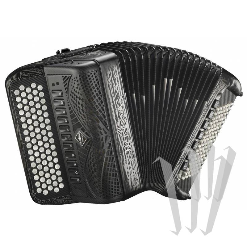 Beltuna Prestige 3050 Fly 版(碳纤维)是一款高端半音阶按钮手风琴,带有共鸣箱、4/5 行、82 个按钮、4 声部、11 个音域 (MD) 和 96 个低音、5 声部和 7 个音域 (MG )。