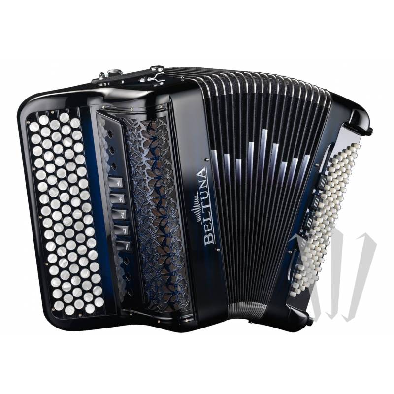 Beltuna Studio 300 是一款半音阶按钮手风琴,有 5 行、82 个按钮、3 个声部、5 个寄存器 (RH) 和 96 个贝司、4 个声部、4 个寄存器 (MG)。适合初级/中级水平。