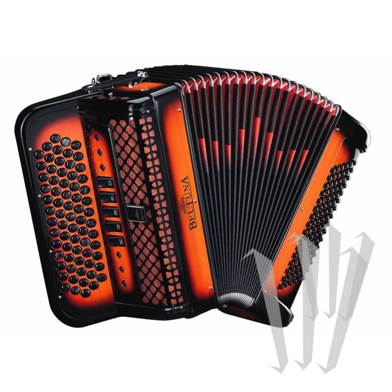 Beltuna Studio III 96 K 是一款半音阶按钮手风琴,有 5 行、65 个按钮、3 声部、5 个音域 (MD) 和 96 贝司、4 声部 (MG)。适合初级/中级水平。