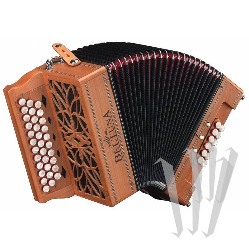 Beltuna Samuel 2 是一款全音阶手风琴,有 3 排、33 个按钮、2 个声部 (MD) 和 12 个贝司、4 个声部、3 个寄存器 (MG)。它配备"Typo A Mano" 簧片,适合初学者和中级手风琴家。