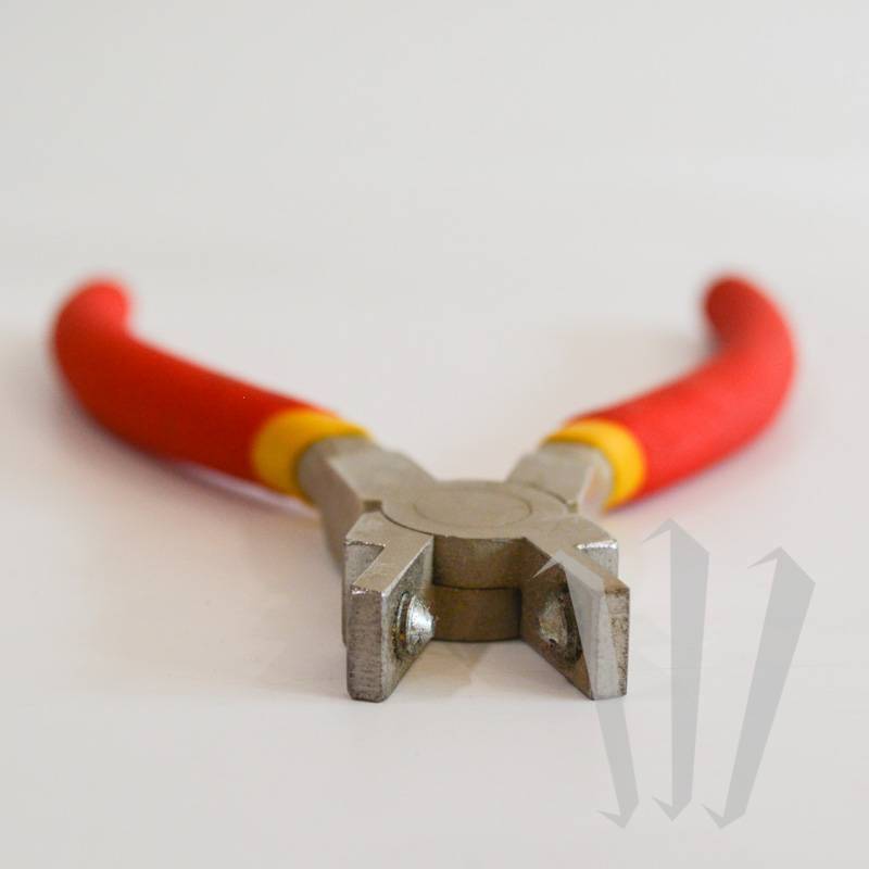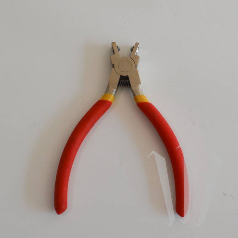 这个夹子是手风琴制造商和修理工用来固定波纹管角的工具。它的尖端可以让您将楔子拧紧在波纹管上,以便在不打开它的情况下永久阻止它,就像平钳一样。
