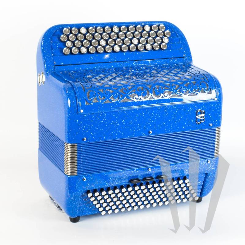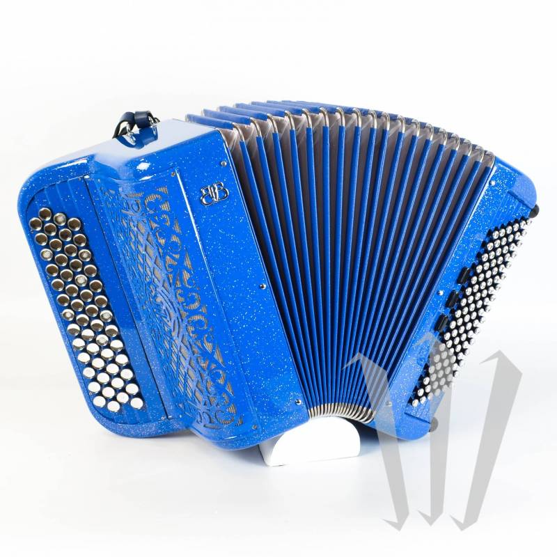 半音手风琴 3 声部、5 个右手音域和 96 个贝司、4 声部、3 个左手音域。 FBB 品牌的中/高端手风琴。
